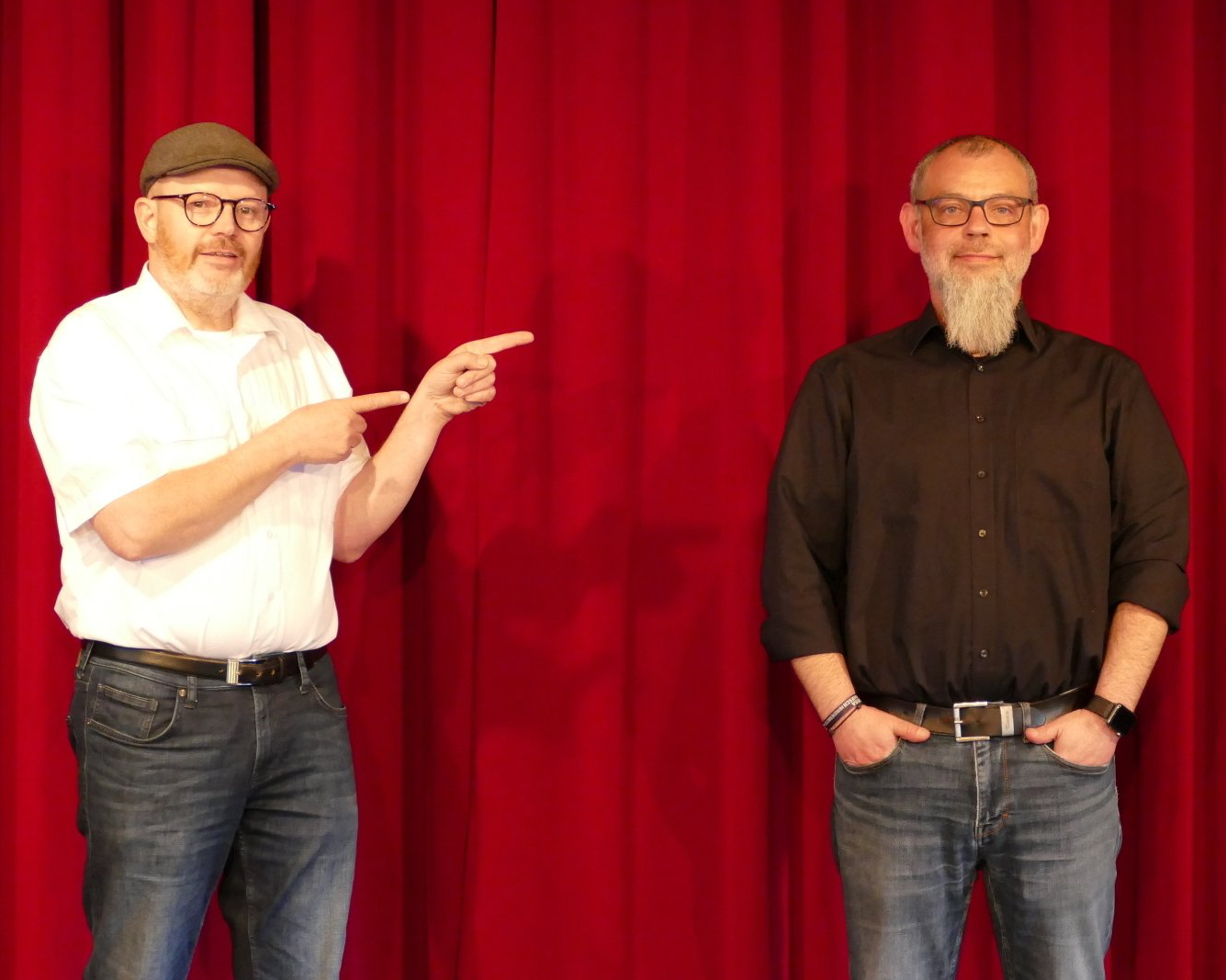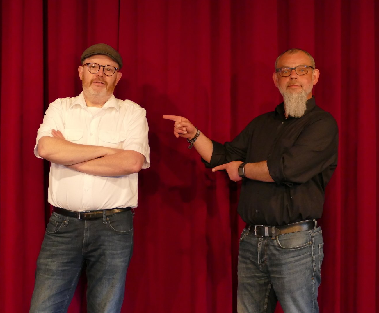 Doch dann kam die Pandemie. Keine Fastnacht, keine "großen" Theaterstücke. Es war Zeit für etwas Neues! Und so entschlossen wir uns ein zwei Personen Stück einzustudieren. Im Herbst 2021 feierten wir mit „Zwei Genies am Rande des Wahnsinns“ Premiere.